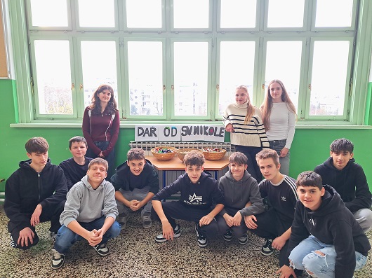 Uenici 1.e razreda i vjerouiteljica Marta pripremili su slatki kutak za sve uenike – slatkiši su nestali u trenu!