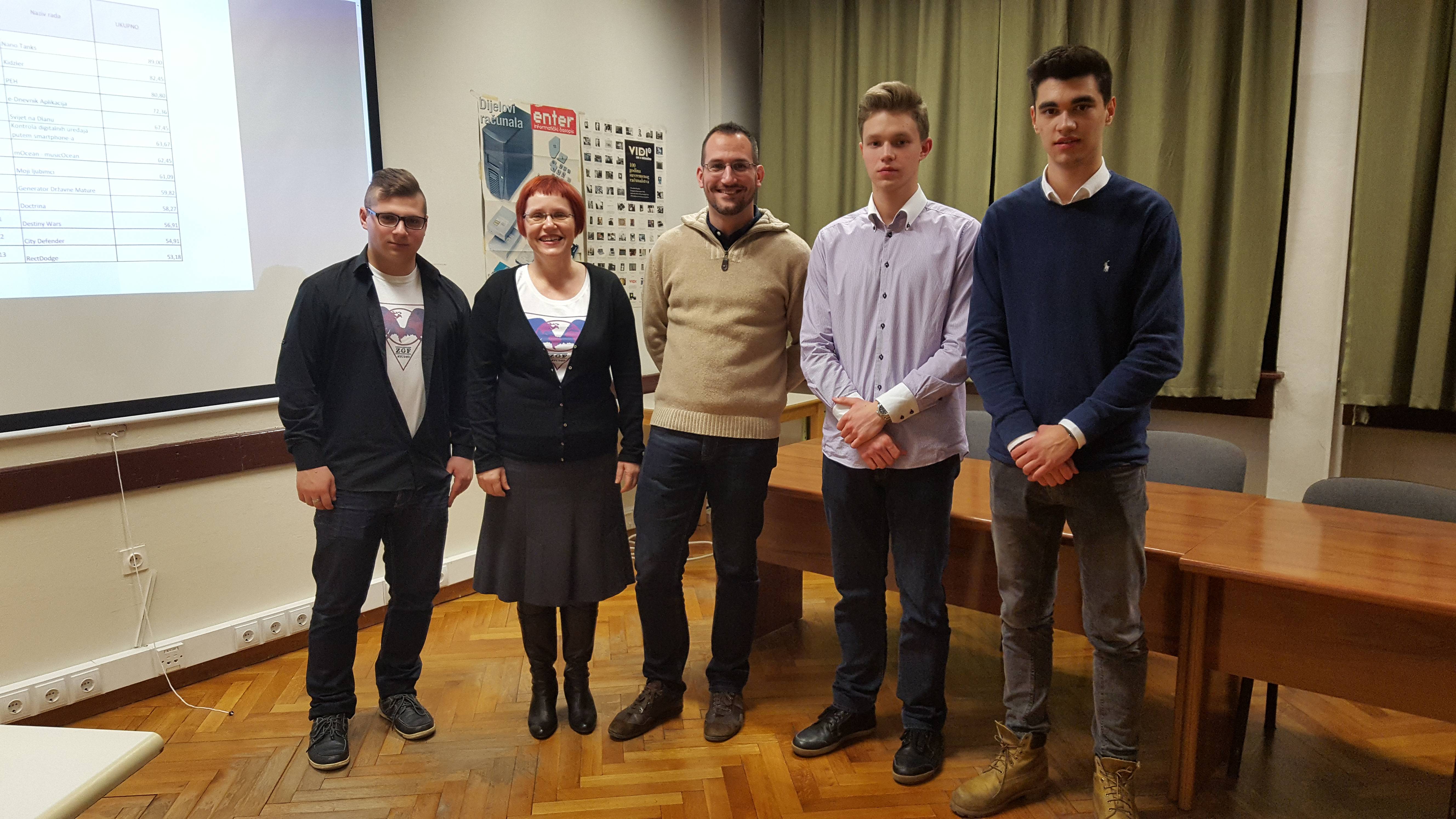 U petak 10. veljače 2017. održano je županijsko natjecanje u kategoriji Razvoj softvera na kojem su se natjecala dva softverska rada učenika III. gimnazije: Kidzler Dominika Cvetkovskog (4. f) i Doctrina Josipa Zavade i Valentina Miličevića (3. f). Županijsko povjerenstvo je nakon dugog vijećanja objavilo rang-listu natjecateljskih radova. Dominik je osvojio drugo mjesto, dok je Doctrina na 10. mjestu. Mentori su profesorica Darka Sudarević i profesor Denis Gagić. Čestitam natjecateljima na odličnim prezentacijama!