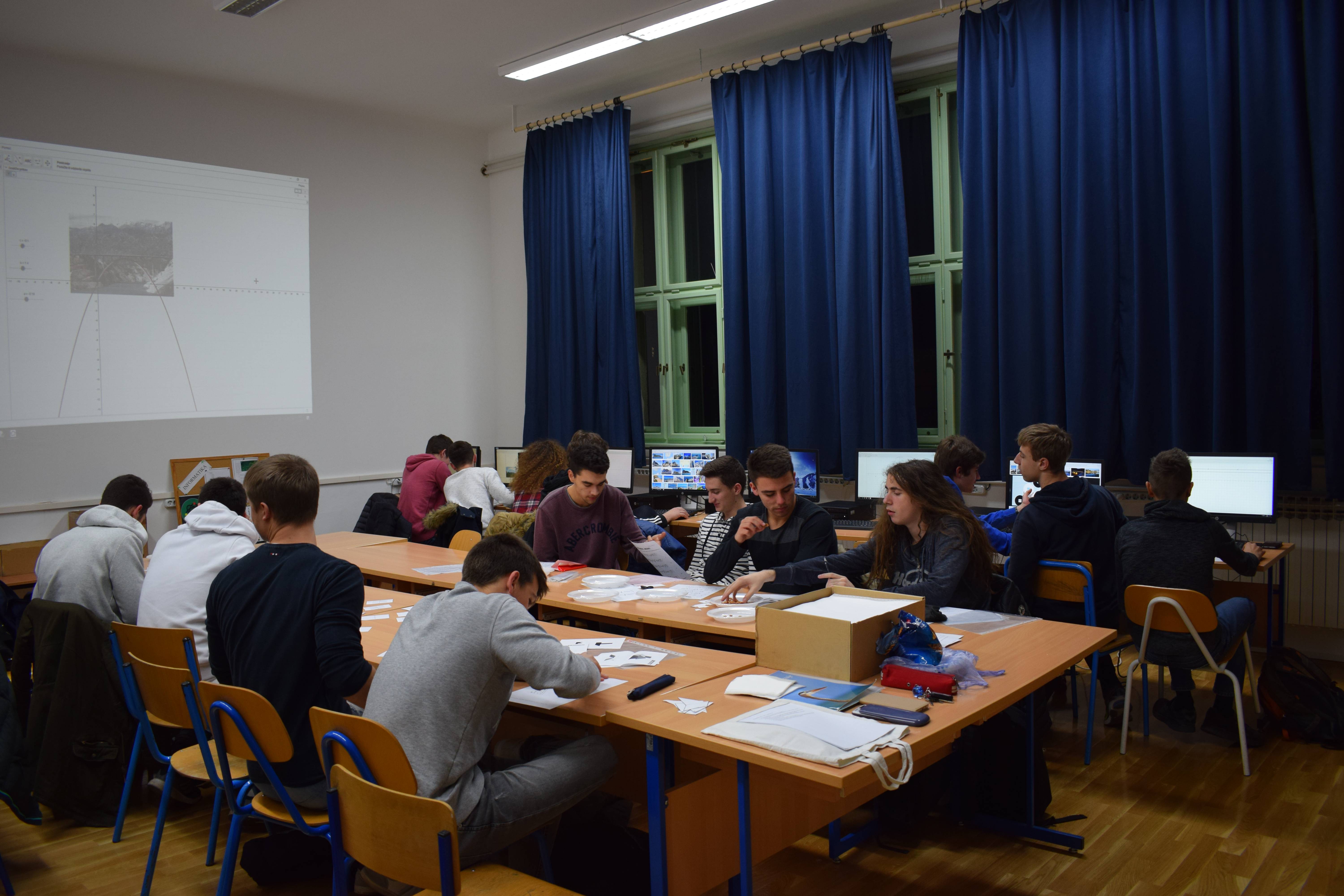 7. prosinca 2017. održana je Večer matematike. Bilo je zabavno i poučno. Uočili smo da su parabole svuda oko nas (mostovi, fontane, lukovi..) i na računalima u Geogebri pronalazili funkcije koje ih najbolje opisuju. U učionici 33 povezali smo matematiku i zdravu prehrane pri slaganju uravnoteženih jelovnika, a u učionici 35 smo se uvjerili koliko matematika može biti zabavna kad se poveže s twistingom i šivanjem.