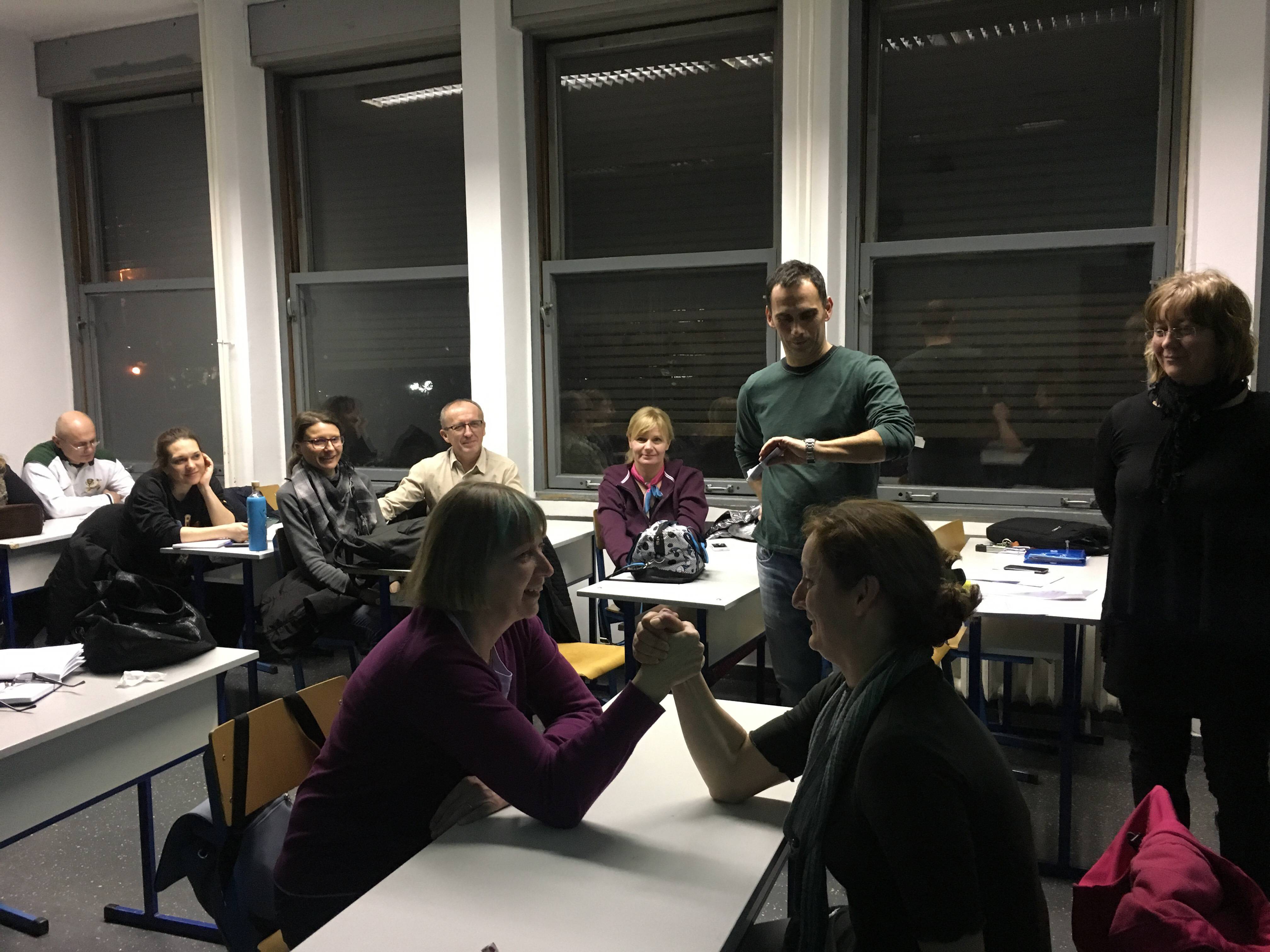 7. ožujka 2018. prof. Antonio Perić održao je je u Udruzi kineziologa inspirativnu radionicu pod nazivom Građanski odgoj u nastavi TZK za profesore tjelesne i zdravstvene kulture. Bilo je govora o grupnom radu i suradničkom učenju, modificiranim igrama, energizerima i forum teatru. Osnovni je cilj svih aktivnosti podići svijest učenika o aktivnom sudjelovanju u društvenim zbivanjima, nenasilnom rješavanju sukoba i vršnjačkom nasilju. Profesori su vrijedno sudjelovali u vježbama i zabava je bila - neprocjenjiva.
