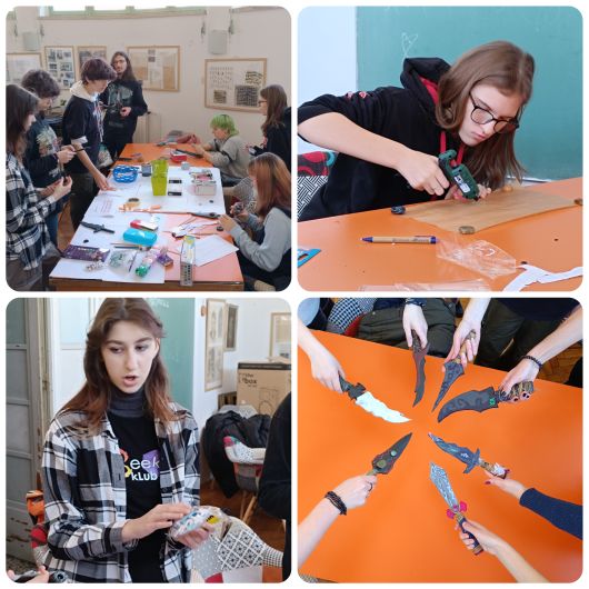 15. i 16. veljae 2025.g. je odrana dvodnevna kreativna radionica izrade filmskih rekvizita koju je vodila Alegra Štrbac, uenica 3.e razreda. Uenici su kroz ovu zanimljivu i zabavnu radionicu uili kako osmisliti, dizajnirati i izraditi jednostavne rekvizite od raznih materijala koji se inae esto koriste u izradi cosplay kostima.