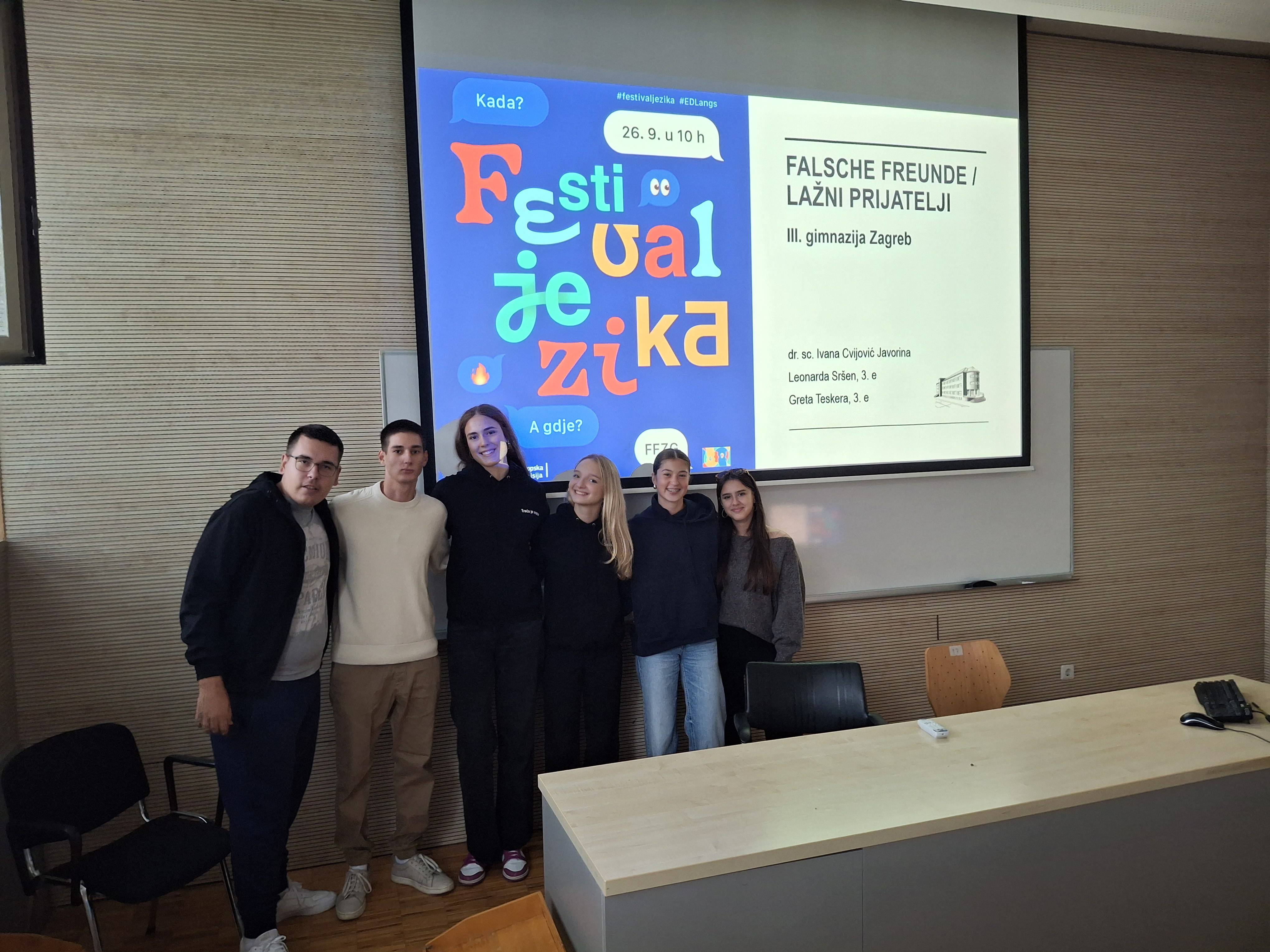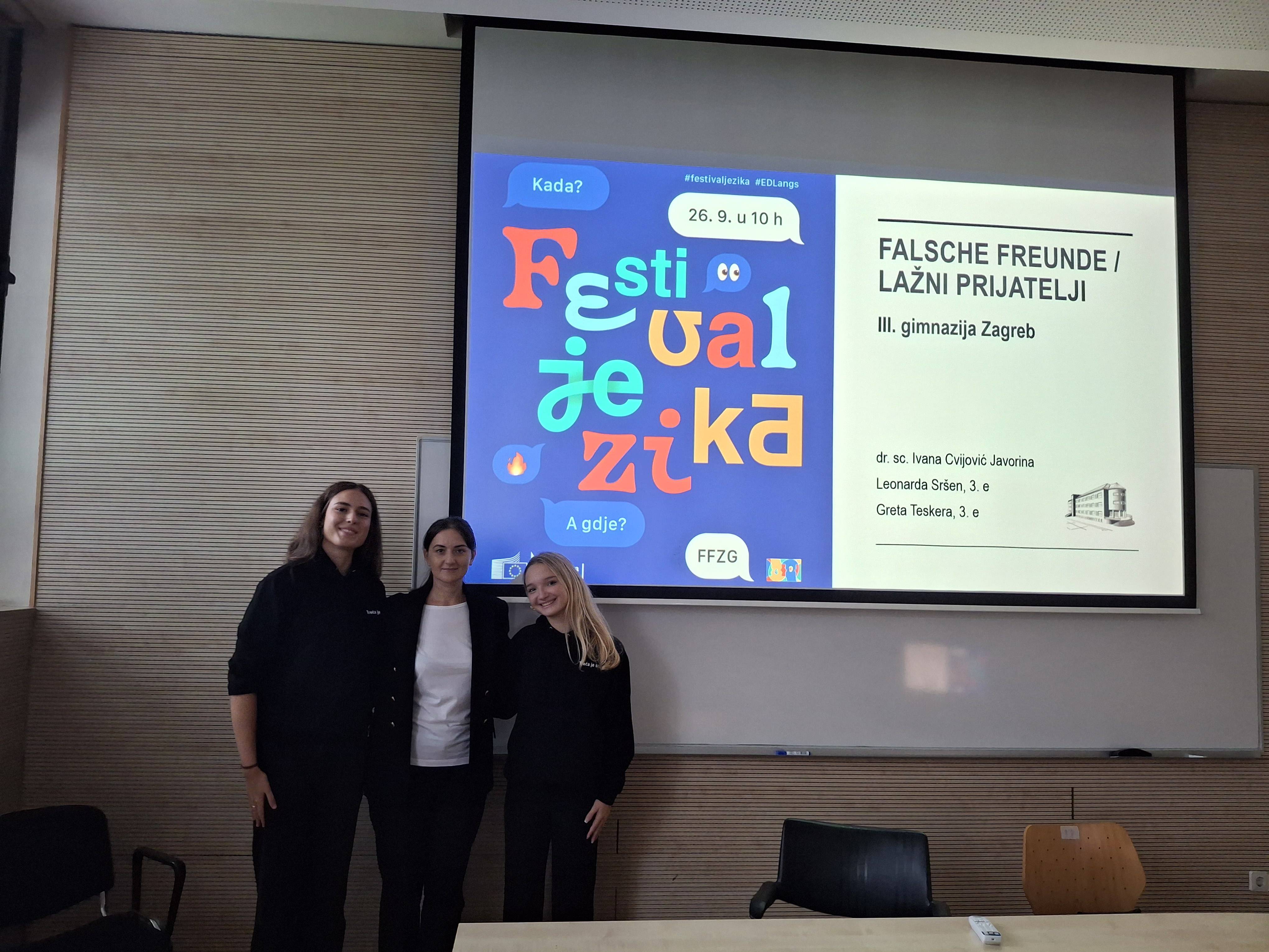 Učenici 3. e razreda sudjelovali su u sklopu projekta „Slično, a različito: nova generacija“ na Festivalu jezika, održanom 26. rujna 2025. na Filozofskom fakultetu u Zagrebu.