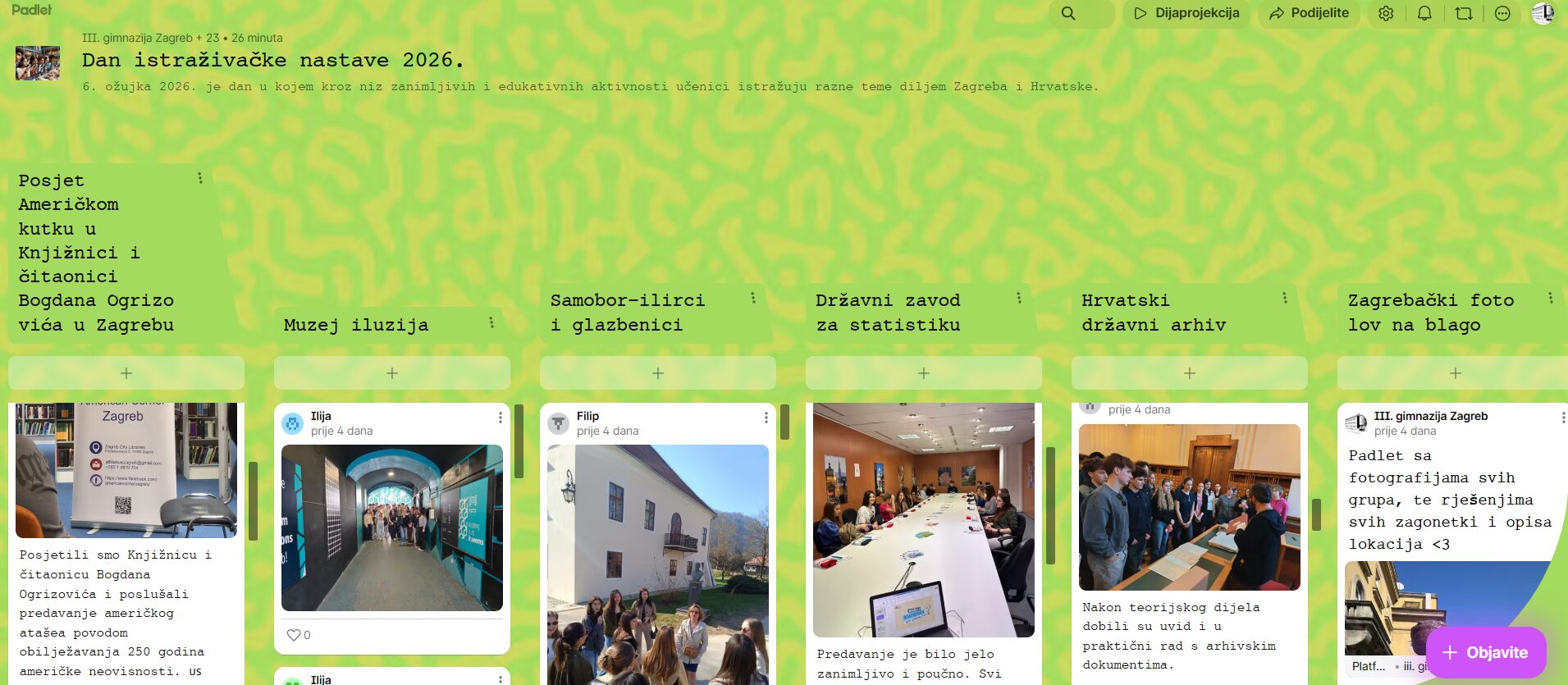 Dan istraživačke nastave ove će se godine održati u petak 6. ožujka 2026. Svi učenici trebaju odabrati između ponuđenih aktivnosti jednu i na nju se prijaviti. Učenici koji su već prijavljeni na sljedeće aktivnosti ne prijavljuju se ponovno: