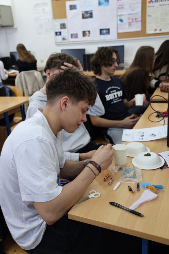 U radionici Pravi asistent koja je održana 10. ožujka 2026. učenici 2. f razreda izgradili su svojeg robota kojeg će programirati kako bi postao AI asistent koji neće samo odgovarati na njihova pitanja, nego ima i fizičko tijelo. Ideja radionice je da učenici korak po korak sastave svog robota te ga ukrase kako bi bio jedinstven. U drugom koraku vlastitim programiranjem će ga i „oživjeti“. Ova radionica pod vodstvom profesora Denisa Gagića i Ilije Barišića zabavno spaja robotiku i umjetnu inteligenciju.