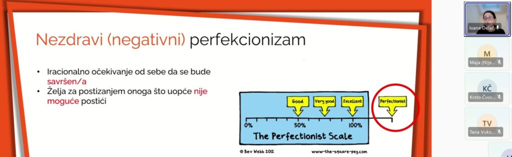 Roditeljima su predstavljene strategije za pružanje psihološke podrške djeci u svakodnevnim izazovima s kojima se susreću te su predstavljene smjernice u slučaju depresivnosti, suicidalnosti i anksioznosti kod djece. Također, roditeljima je predstavljen koncept perfekcionizma te njegove dvije krajnosti: adaptivni i neadaptivni perfekcionizam. Također, predstavljene su i smjernice za prevenciju neadaptivnog perfekcionizma i očuvanje psihološke dobrobiti djeteta.